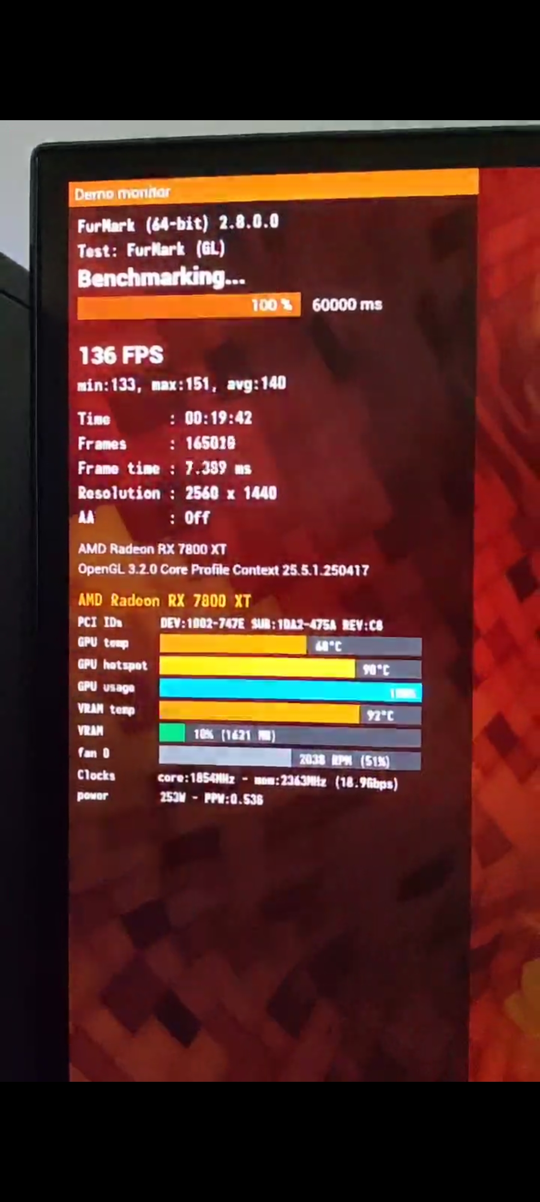 EKRAN KARTI: SAPPHIRE PURE RX 7800XT 16GB EKRAN KARTI - 3 Fanlı. 20 dakikalık Furmark sonucunu da ekledim.