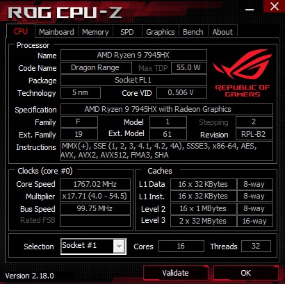 İşlemci: AMD Ryzen 9 7945HX (16C / 32T)