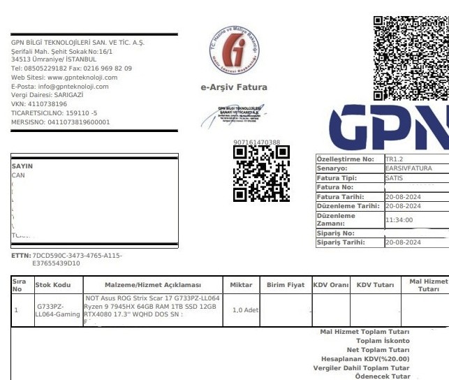 • Depolama: 1 TB NVMe SSD