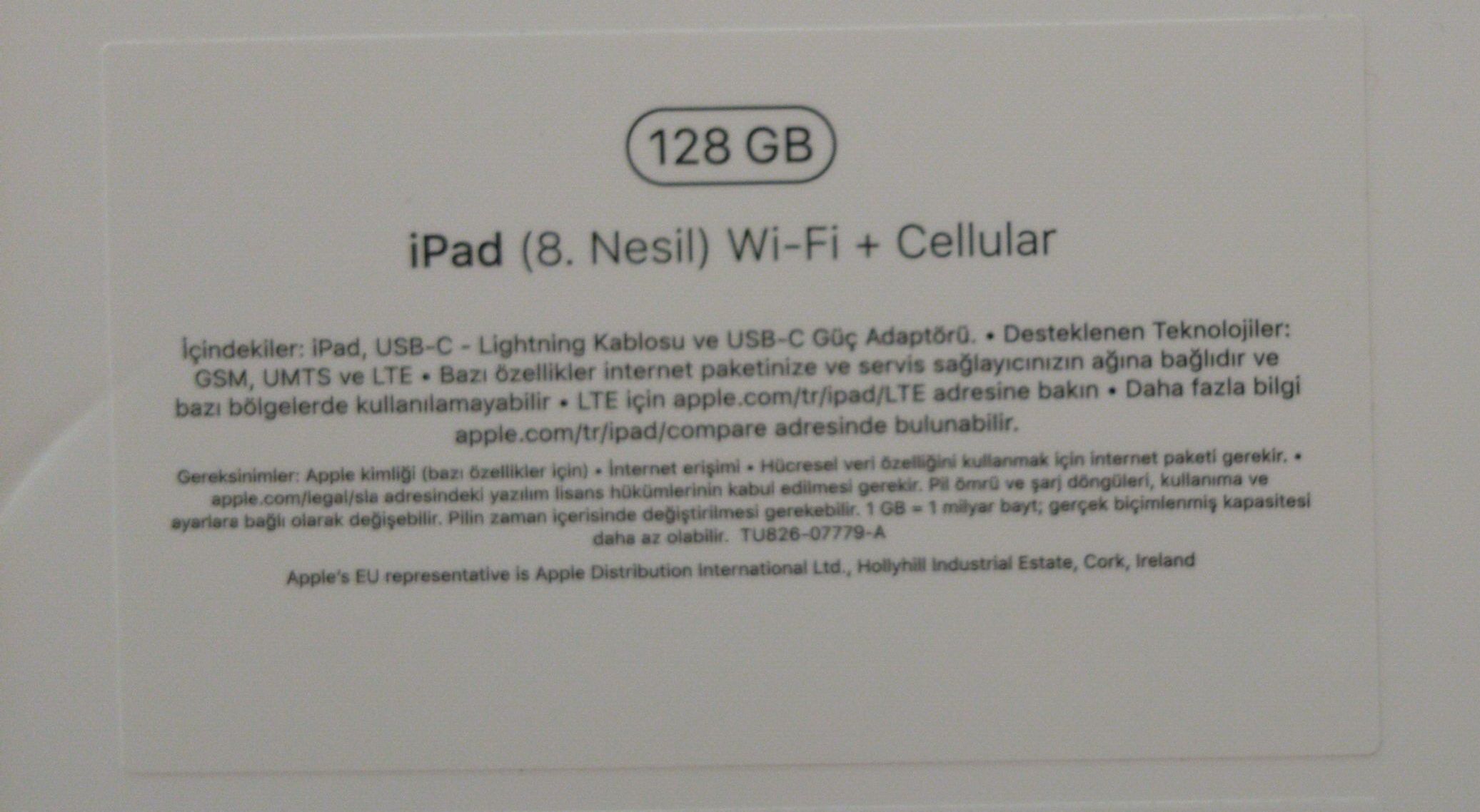 Akbank cekilisinden kazandım. 8. nesil 128 gb wifi ve sim kartlı model. model numarasindan araştırırsanız en ucuz 4739 tl oldugunu görürsünüz. kontrol amaçlı kutuyu actim. Cihazı çalıştırmadım. Apple Türkiye garantili. tabletim olduğu icin satıyorum. ihtiyac fazlası. once para sonra kargo seklinde gönderebilirim.