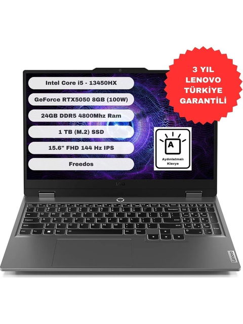 LENOVO LOQ Intel Core i5-13450HX 24 GB DDR5 RAM 512 GB NVMe SSD GeForce RTX™ 5060+ MUX 15,6" FHD (1920x1080 IPS 300 nit Parlama önleyici, %100 sRGB, 144 Hz, G-SYNC®)