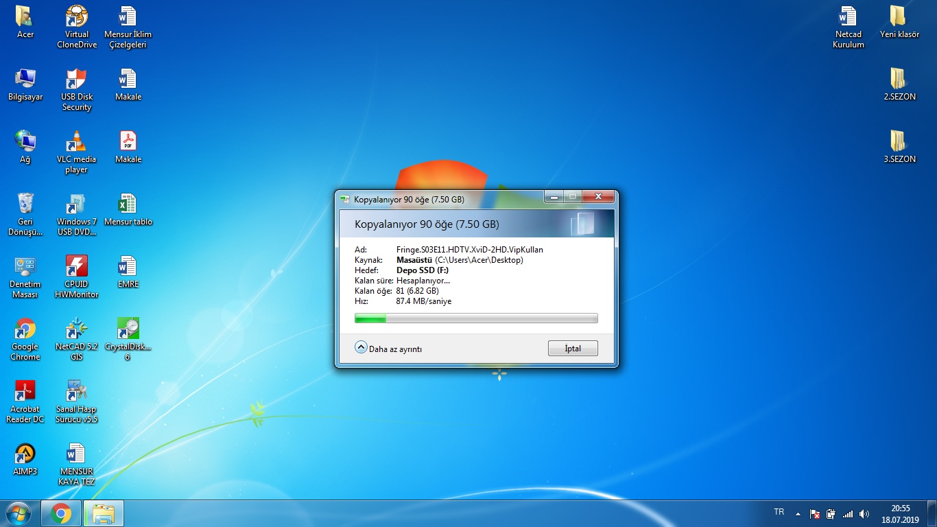 Kopyalama ssd li ı5 2 nesil Acer laptopum da usb 3.0 girişinde masa üstünden ssd kutusuna max 80mb/sn lerde