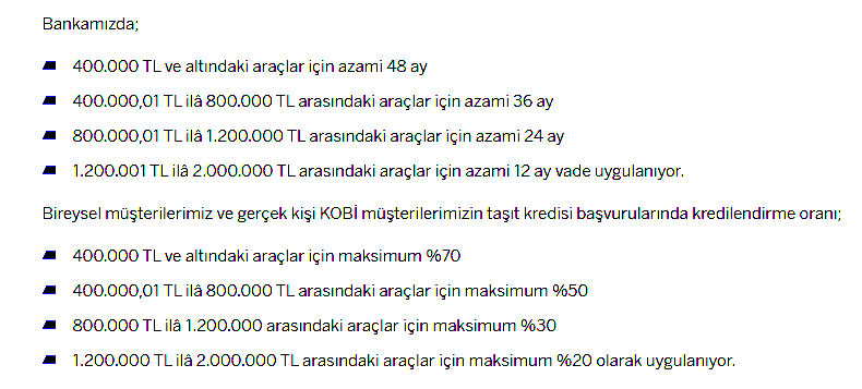=> Taşıt kredisi ne kadar çekebilirim