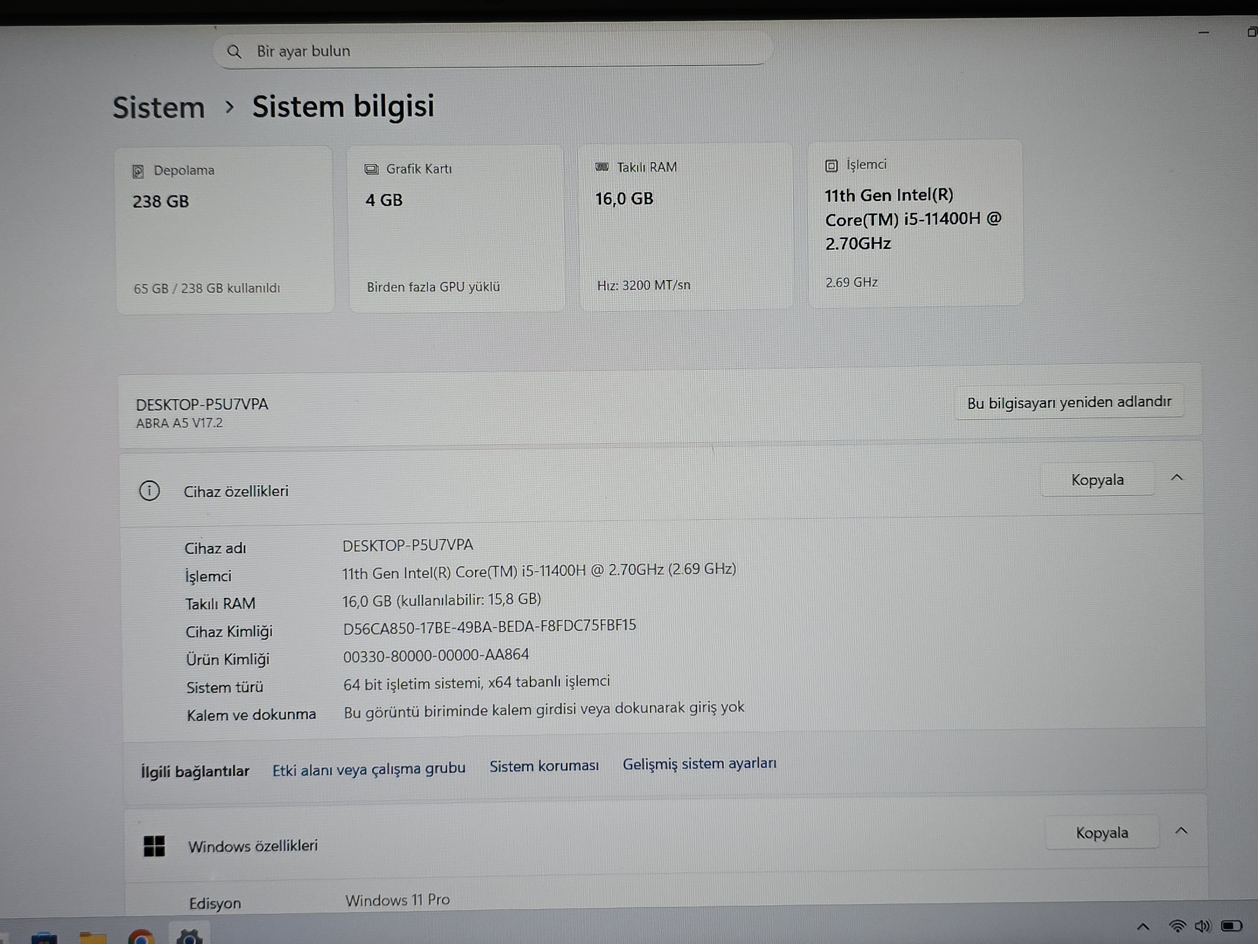 [SATILDI] Monster Abra A5 V17.2 RTX3050Ti i5 11th