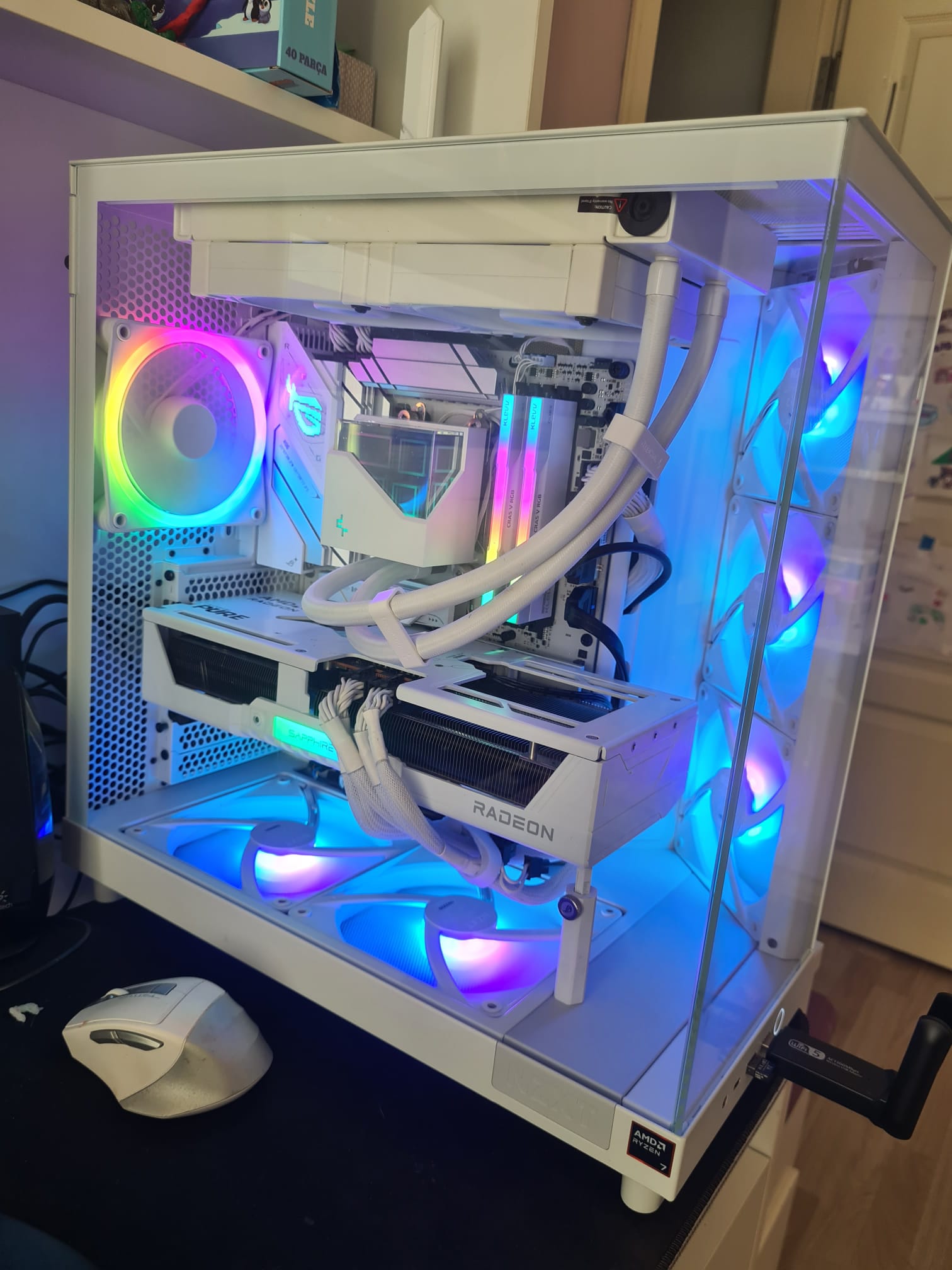 Kasa sıfıra yakın temizlikte, eziği, vuruğu olmayan pırıl pırıl bir kasadır. Soğutma performansı ve sessizliği muhteşem olan kasa bu güne kadar kullandığım en iyi hava sirkülasyonuna sahip ve bunu sessizce yapan en iyi kasadır. Çocuklarım ekranlı lcd fan istedi ve lian li kasa+ fanlara geçtiğim için kasa boşa çıktı. Kasayı aldığınızda önde 3 adet argb nzxt fan ile geliyor. Ben ekstra olarak alta 2 tane 140mm nzxt yüksek performanslı fan, arkaya da yine kutulu ve garantili yüksek performanslı f120 rgb duo fanını alarak taktım.Gel gelelim bu fanları kullanabilmem için nzxt çevirici-çoklayıcı kablo gerekiyormuş. Ekstra para verip bu kabloyu da aldım ve kasa şu an bütün fanlar+argb ler ile mükemmel bir uyum içerisinde. Fotolardan birinde sistem kurulu hali de görünmekte. Kasanın garantisi ve kutusu bulunmakta ancak garajda duran kutuya kedi yavruladığı için köpüğünü baya tırmalamışlar. Yine de sağlam bir şekilde kutulayıp gönderirim (kargo durumunda mesuliyet alıcıda olmak kaydıyla).