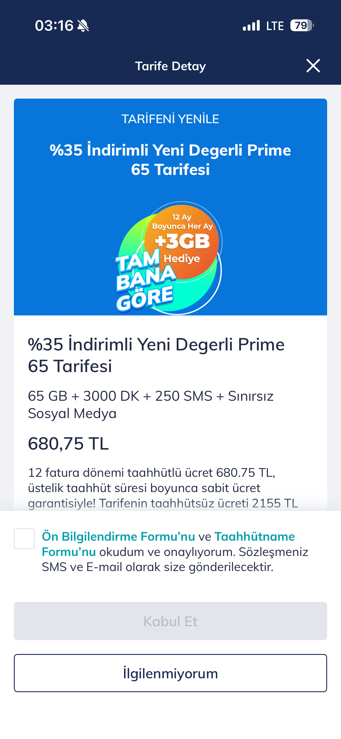 Merhaba beyler. Fotoğrafaki gibi paketler verdi bana TT taahhüt bitmesine ise 2 aylık bir süreç kaldı. Bu paketleri almamı önerir misiniz 65gb tı mesala. 70gb tı almak istemiyorum çünkü 5gb için 100 tl fark vermek istemiyorum. Yada bu yeni sınırsız paketi 1900 tl ye önerir misiniz iPhone ile paylaşıp Windows regedit ayarı yaptıktan sonra hotspot limitten düşmeyecekse ![]() ![]() ![]() < Bu ileti mobil sürüm kullanılarak atıldı > |