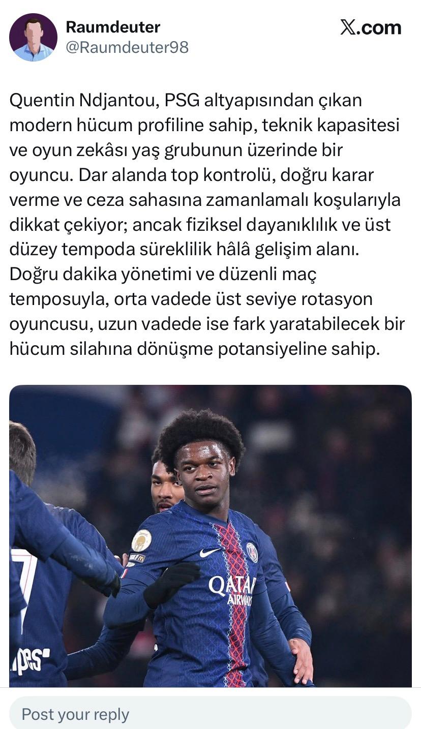 Mbaye, ilk assistlerini yaparken, Ndjantou da ilk golünü atti.Ndjantou, şimdiden 1 gol, 2 assistle oynuyor. Mbaye, maç alacak seviyeye geldi, lakin Ndjantounun kivama gelmesi sezon sonunu bulur. < Bu mesaj bu kişi tarafından değiştirildi Mbaye49 -- 14 Aralık 2025; 10:40:25 > |