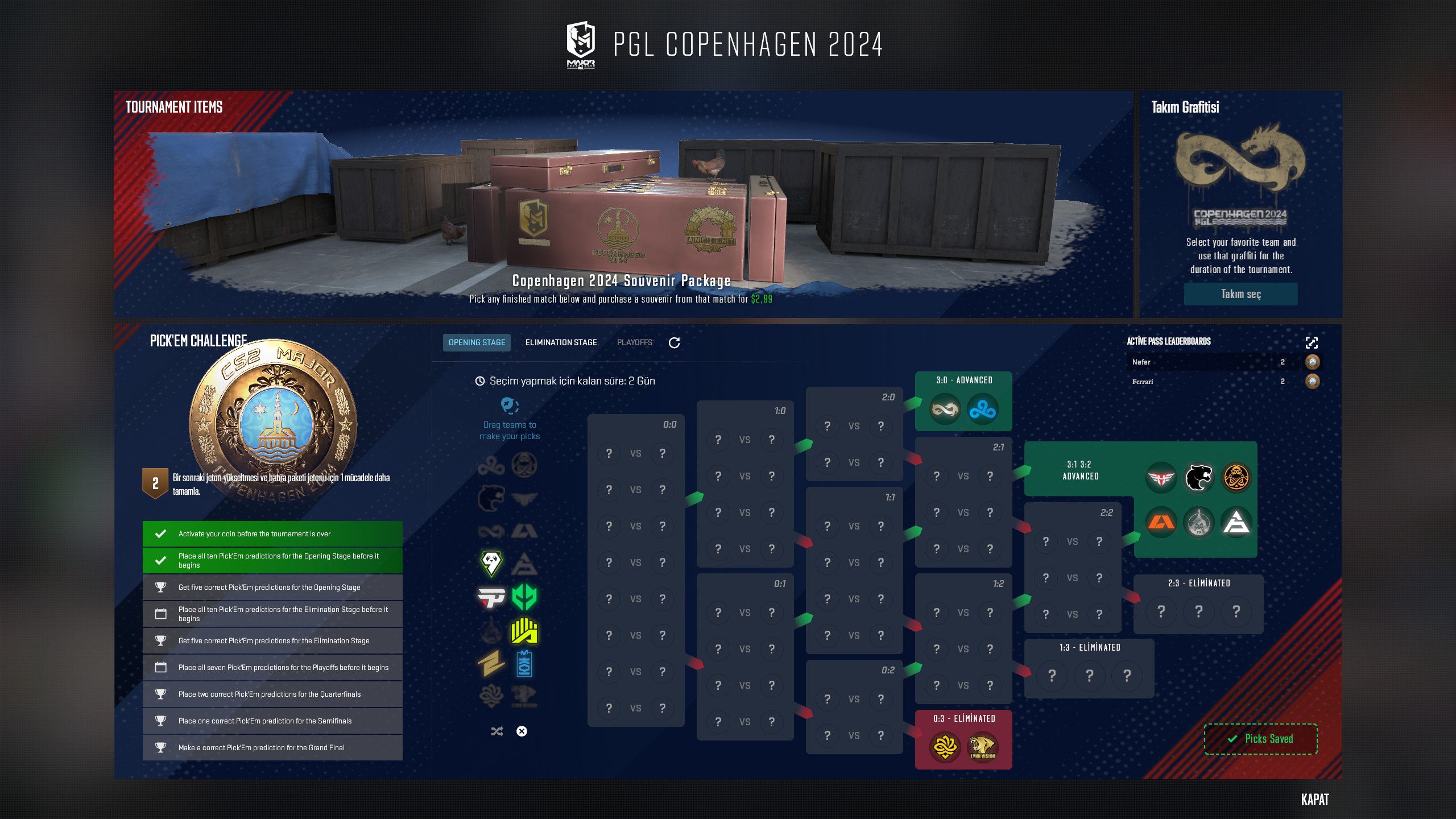 Cs2 nin ilk Major'u için Tahminlerimizi bu başlıkta paylaşalım hayırlı günler :) Bilet Fiyatı 9,99 Dolar ve 17,99 dolar olarak 2 seçeneklidir. PGL CS2 Major Kopenhag, 17 Mart'tan itibaren iki hafta boyunca gerçekleşecek. Valve, daha önce kullanılan 'Meydan Okuyanlar', 'Efsaneler' ve 'Şampiyonlar' etiketlerini kaldırarak, bu Major için aşamaların adlandırma kuralını değiştirdi '. İlk etapta, 17 Mart'ta başlayacak olan Açılış Aşaması olacak. Ardından, 21 Mart'ta başlayacak olan Eleme Aşaması gelecek ve takımlar, yarışmanın son aşaması olan Playoff Aşaması'na ilerleyecek olan son sekize düşecek. 16.000 kapasiteli Royal Arena, yıllar boyunca pek çok destansı Counter-Strike savaşına sahne olan ancak hiçbiri Binbaşı kadar prestijli olmayan Playoff Aşaması için savaş alanı olarak hizmet verecek. Büyük final 31 Mart'ta gerçekleşecek ve yalnızca bir takım ilk CS2 Major'ın galibi olarak isimlerini tarih kitaplarına yazabilecek. ![]() ![]() ![]() |