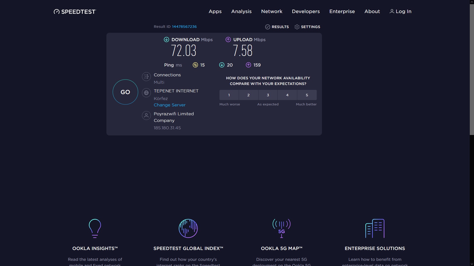 PoyrazNet kısıtlama yapıyor. Sizde kontrol eder misiniz ? Gene bir kısıt mı yoksa bana özel mi ? 77 mbps bağlantı hızım olmasına rağmen ![]() Kablo ile tek bir cihaz bağlantı sonucum : ![]() @PoyrazNET Umarım buradasınızdır. Neden 75mbps bağlantı hakkım olmasına rağmen kısıt koyuyorsunuz. Teşekkürler. |