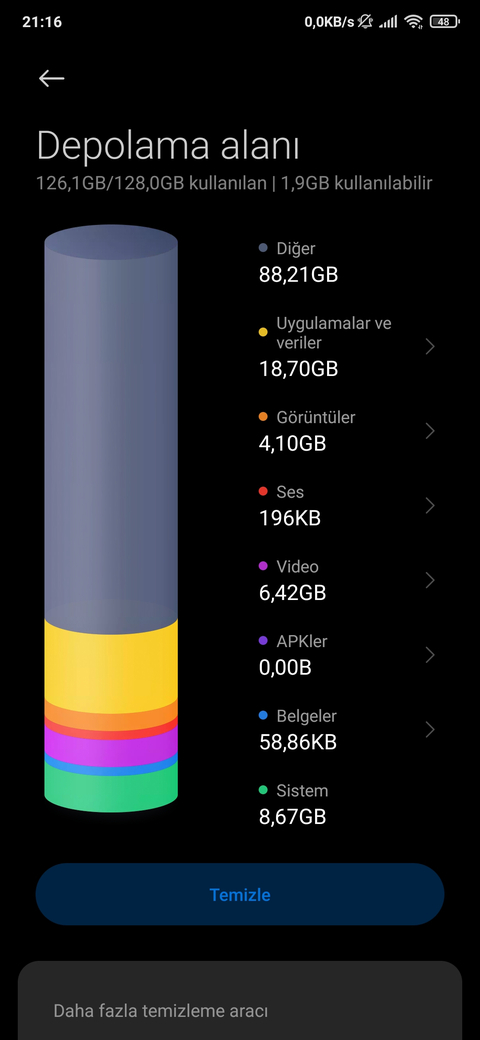 TELEFONDA DİĞER KISMI 88GB YER KAPLIYOR ?!