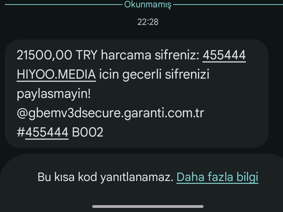 Selamlar, dün akşam telefonuma 21500 TL harcamanız için şifreniz diyerek Garanti Bankasından bir mesaj geldi ve ardından bir cep telefonu numarası ısrarla aramaya başladı, aramayı reddederek uygulamaya girdim ve kartımı geçici kapadım ve bankayı aradım, mh ile görüşmemde harcama yapıldı ise hiçbir şey yapamayacaklarını, sorumlu olmadıklarını istersem hesabımı ve kartımı kapatabileceklerini, telefon eşleştirmemi iptal edeceklerini söylediler, ben de zaten uygulamaya girerek bu işlemleri yapabildiğimi ve kendilerine kartımla ilgili şüpheli işlemin neden/nasıl olduğunu, hesabımdan herhangi bir şüpheli işlem yapmaya çalıştıklarını sorduğumda biz bir şey göremiyoruz diye savuşturdular. Şu an uygulamaya giremediğim için de o zaman zarfında farklı bir şüpheli hareket oldu mu göremiyorum da.