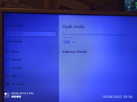 Ayarlar ağ bağlantıları bölümünde Uçak Modu hiç yok. uçak modu aktif kalmış bir türlü uçak modundan çıkamıyorum.