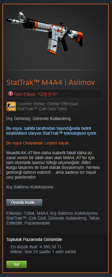 [Satılık] StarTrak M4A4 Asiimov (Görevde Kullanılmış)