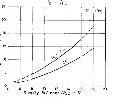 Entegre kanal başına maksimum 10watt'a kadar verebiliyor. Tabi düşük thd oranıyla, bu 7-8watt civarına kadar düşecektir