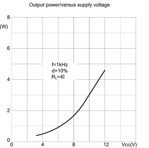 2x 5watt rms çıkış gücüne sahiptir. 4 ohm hoparlöre kanal başına %10thd ile 4.5 watt verebilir.