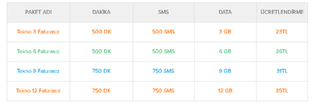 Teknosacell (Faturasız paketler) 12gb 35tl vs vs