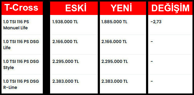 Ülkemizdeki en popüler markalardan Volkswagen'in ÖTV oranlarından sonraki satılan tüm modellerin yeni fiyat oranları yukarıda ki listelerde.