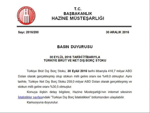 TÜRKİYENİN DIŞ BORCU 416 MİLYAR DOLAR