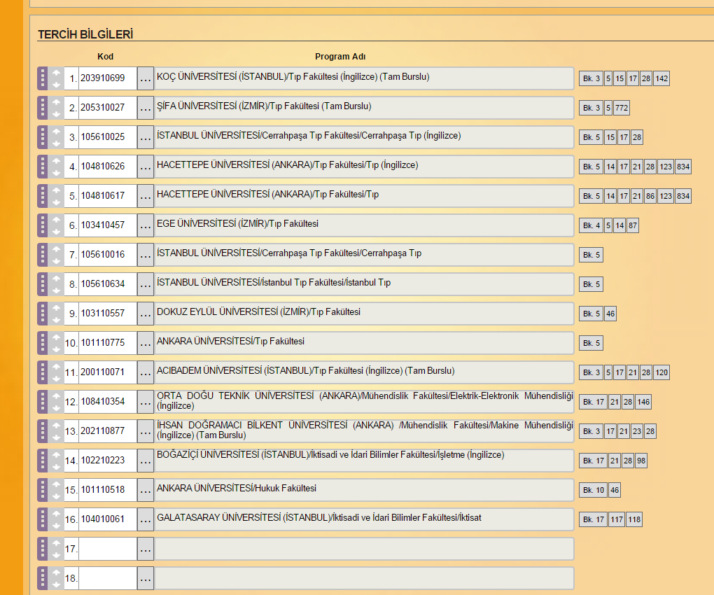 TERCİH LİSTEM [ÖNERİLERİNİZE AÇIĞIM]