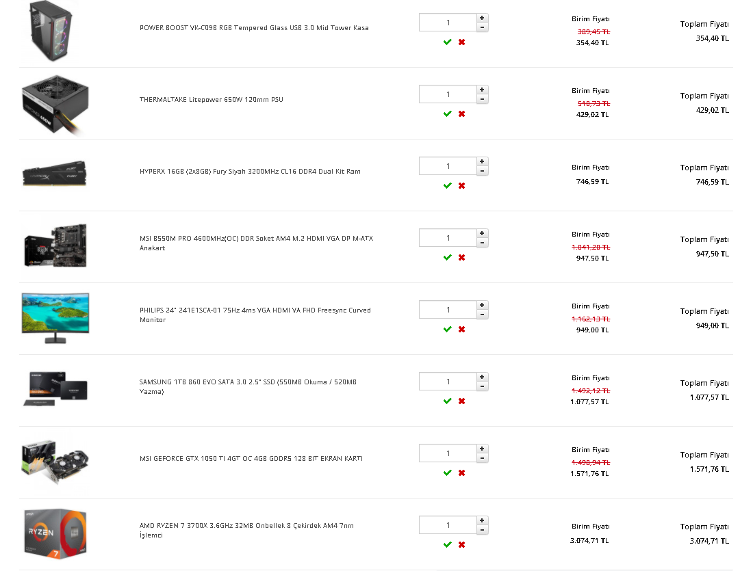 8000₺ civarı bütçem var. Ama parçalarla ilgili zerre bir bilgim yok Birazcık bilgi edinip kendimce şöyle bir şey yaptım: