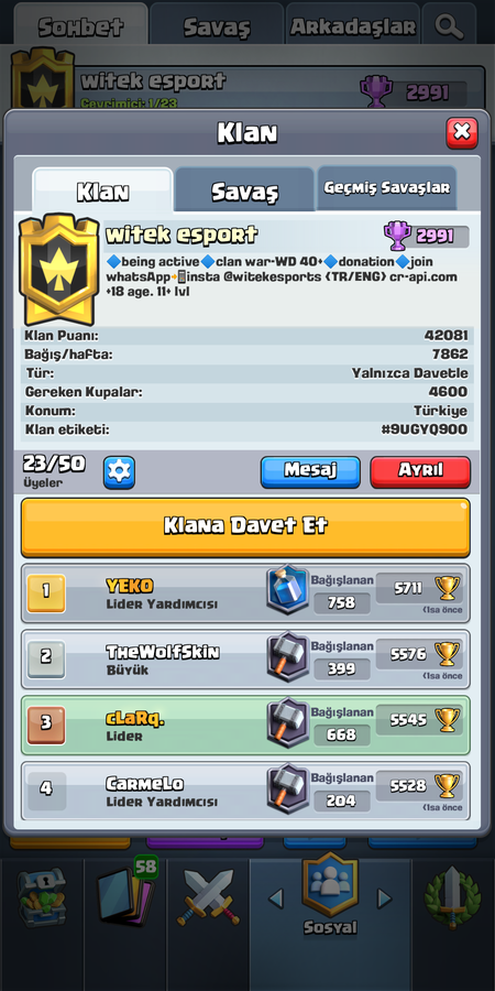 Clash Royale Klan Alımı (Witek Esport) 4600+ Kupa