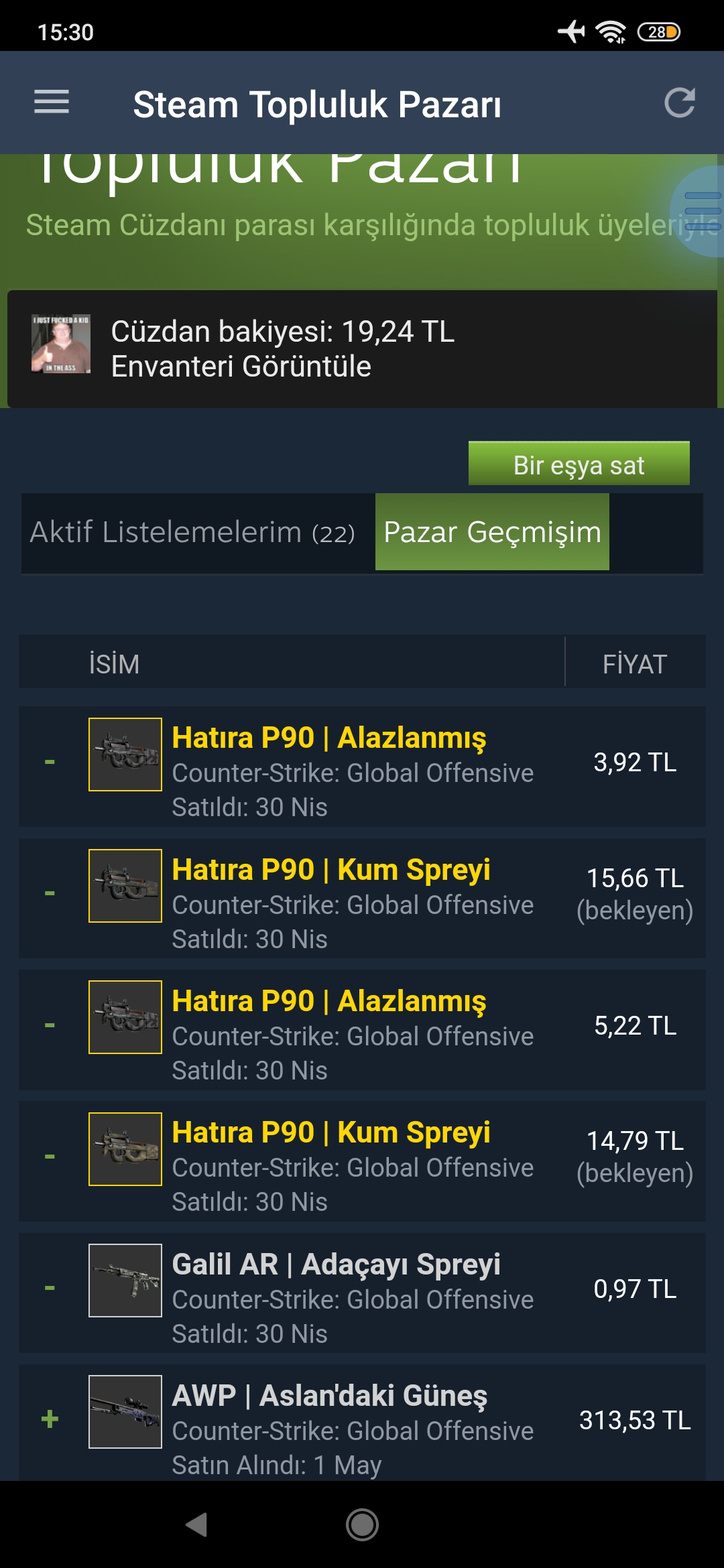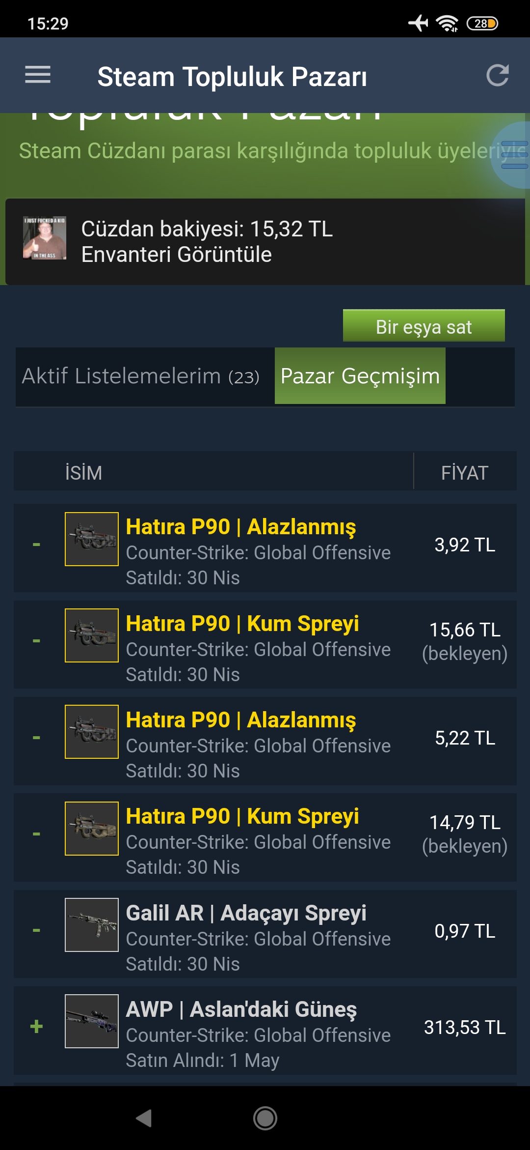 Pazarda item sattim (bekleyen) yaziyor odeme gelmedi -