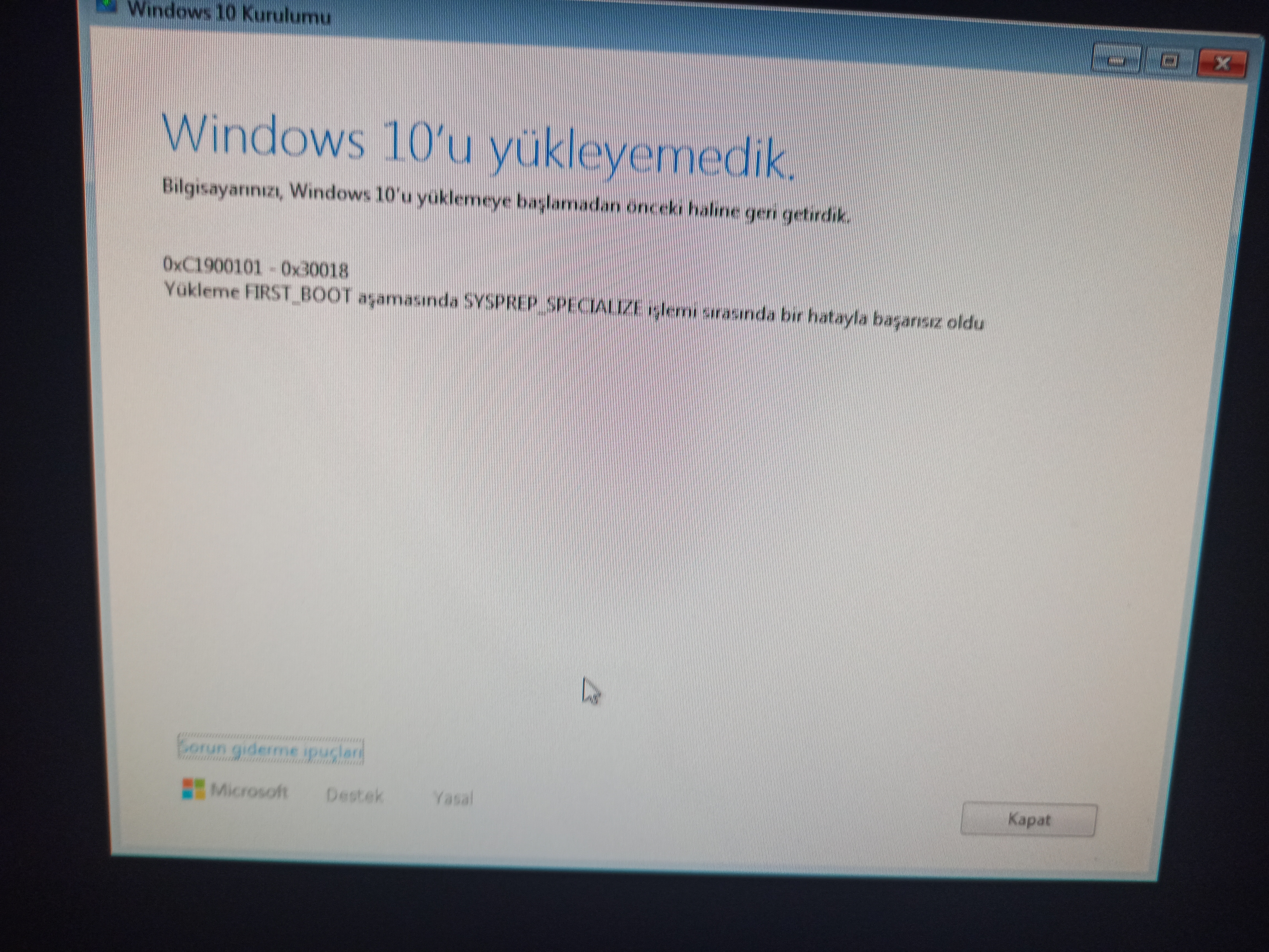 Windows 7'den 10'a yükselmeme sorunu