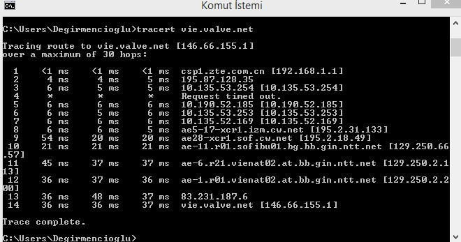 Tracert vie.valve.net