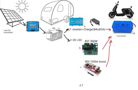 e-moped (48v akü) kullanıyordum ve onu 48V solar şarj kontrol cihazıyla şarj ediyordum. Yeni e-mopedim 72V ve Solar MPPT kontrol cihazı bulamadım. (Buck olarak)