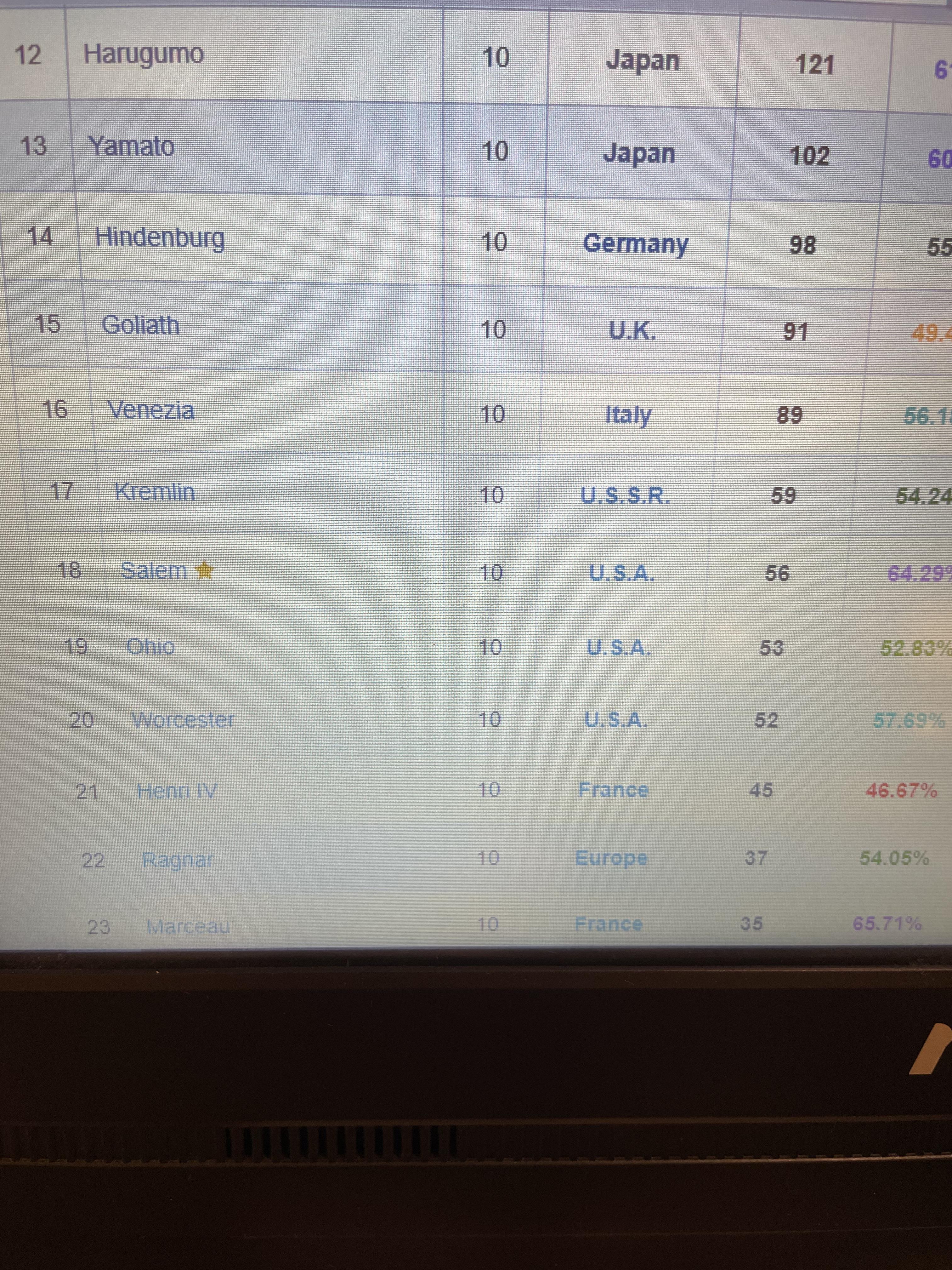 32 Adet Tier 10 Gemi mevcuttur.Hesap Win Rate 54,27 dir.İngiliz özel kaptan hariç diğer kaptanların hepsi var.Kaptanların tamamı 21. seviyedir.7 adet premium Tier9 Musashi Kronshtadt Jean Bart Agir vs mevcuttur.Gemilerin tamamında kalıcı kamuflajları vardır.Tier 8 de Loyang Loyang B Vanguard Rochester ve Congress vardır.Erişime kapalı olan Smolensk Thunderer Atlanta Shinonome Kronshtadt buna benzer gemiler mevcuttur.Bütün gemi hatlarını sıfırlayıp x2 araştırma bürosu puanını alabilirsiniz.30k çelik 350k kömür 12 k araştırma bürosu puanı 45m kredi hesapta var. Hesaba ait bilgilere linkten ulaşabilirsiniz. İletişim için mesaj atabilir yada 05469290840 numaradan ulaşabilirsiniz.