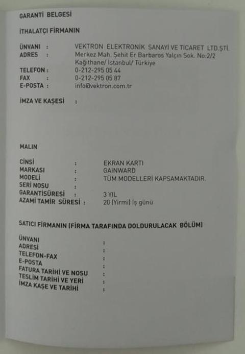 Kart Vektron ithalatlı, 3 yıl garantili.