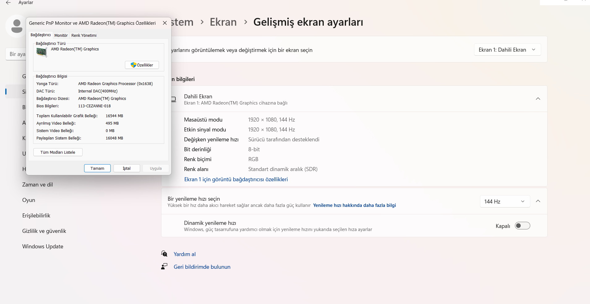 Ekran kartı driver silip yenisini kurdum olmadı.