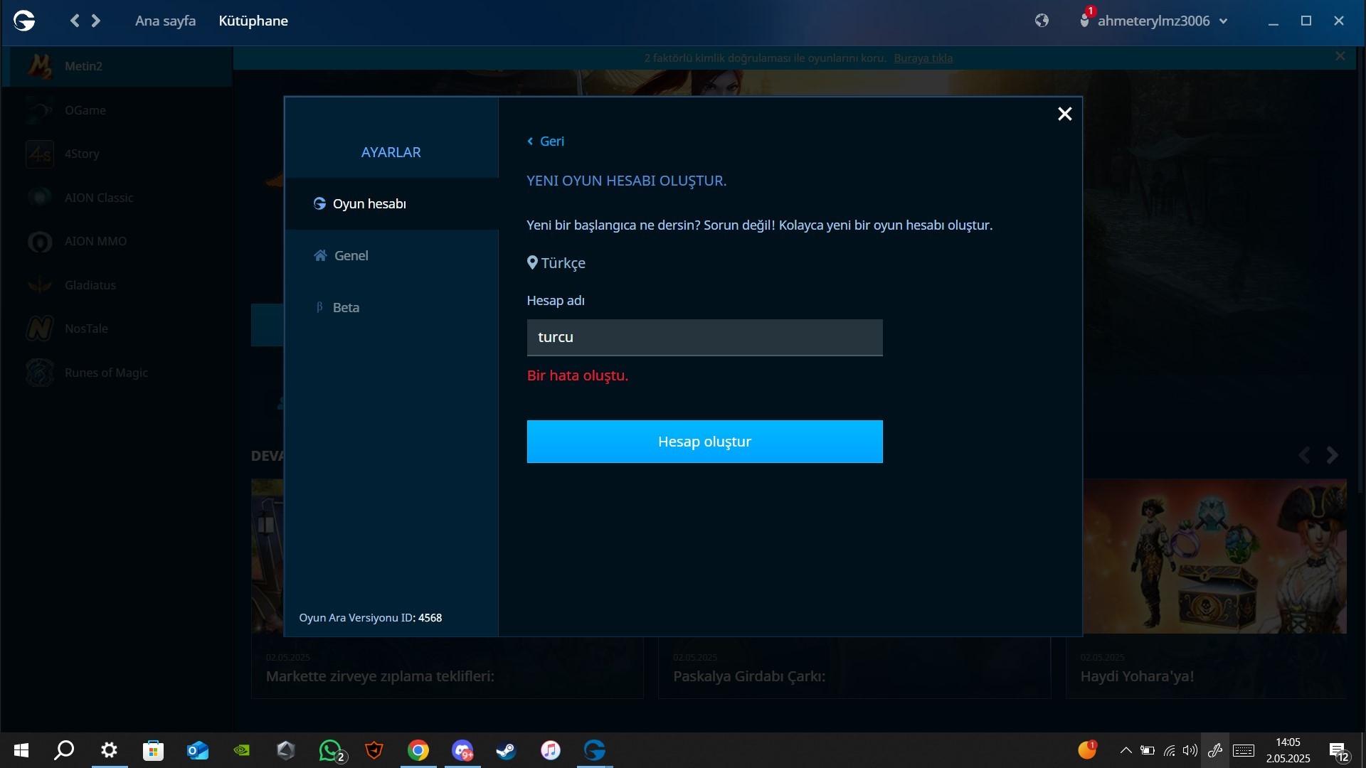 ama oyun hesabı ekleyemiyorum hata veriyıor şifremi unttum diyorum e posta doğru değil yazıyor