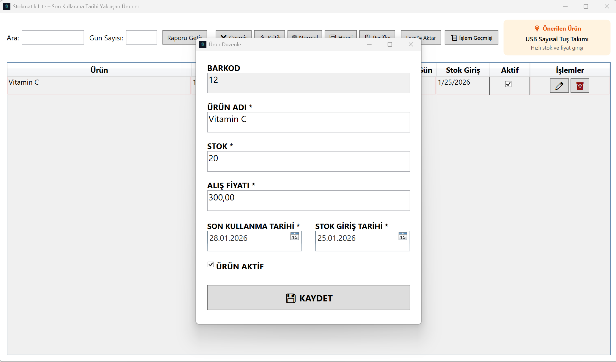 ➡️ Tarihi geçen ürünü satmayı engellemek