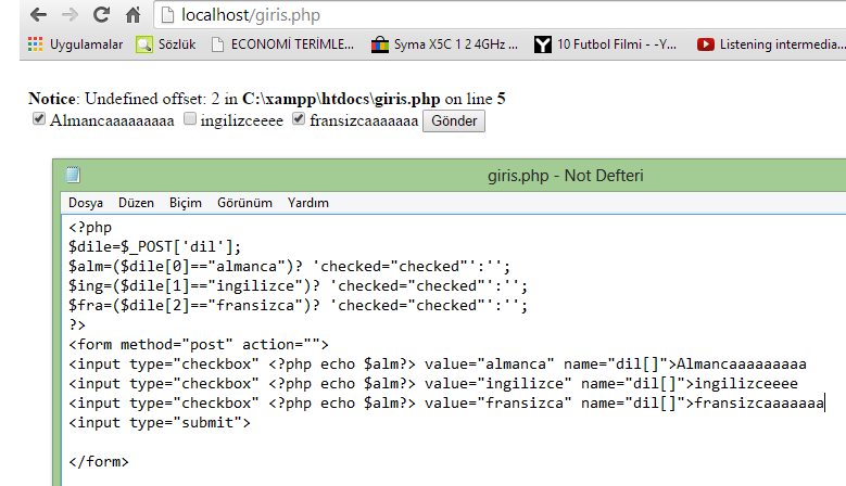 checkbox tan gelen bilgiyi göstermek