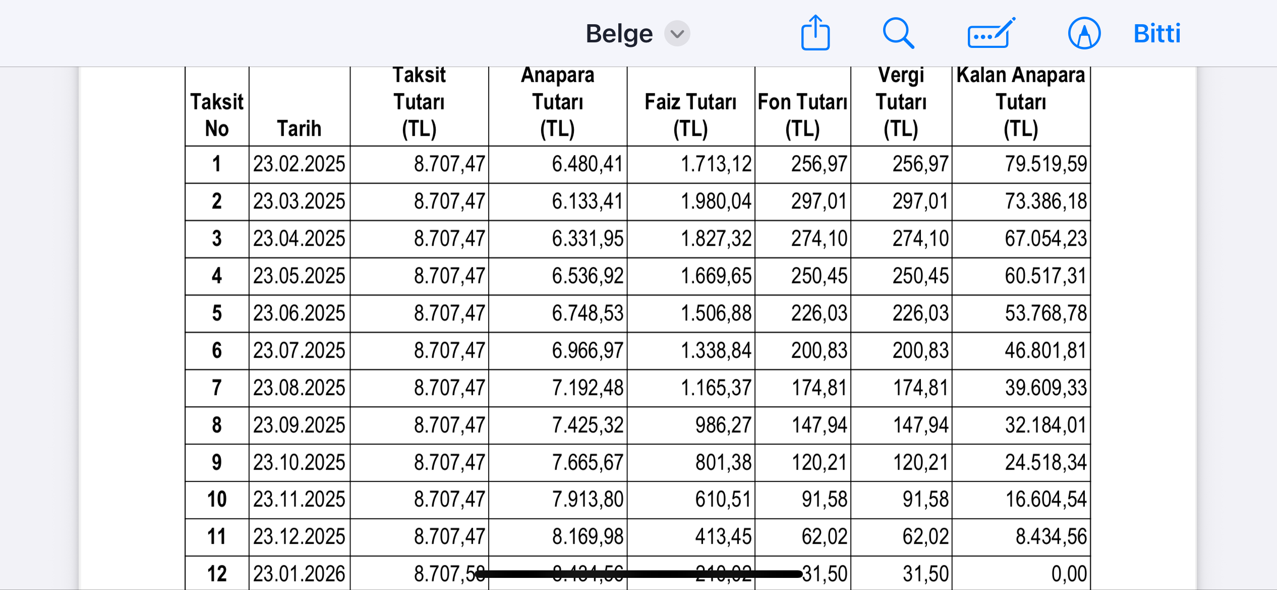 Erken ödeme yaptıktan sonraki ödeme planı