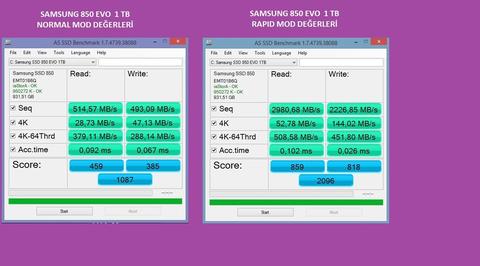 Samsung Magician İle Yaptığım Testler Rapid Mod On