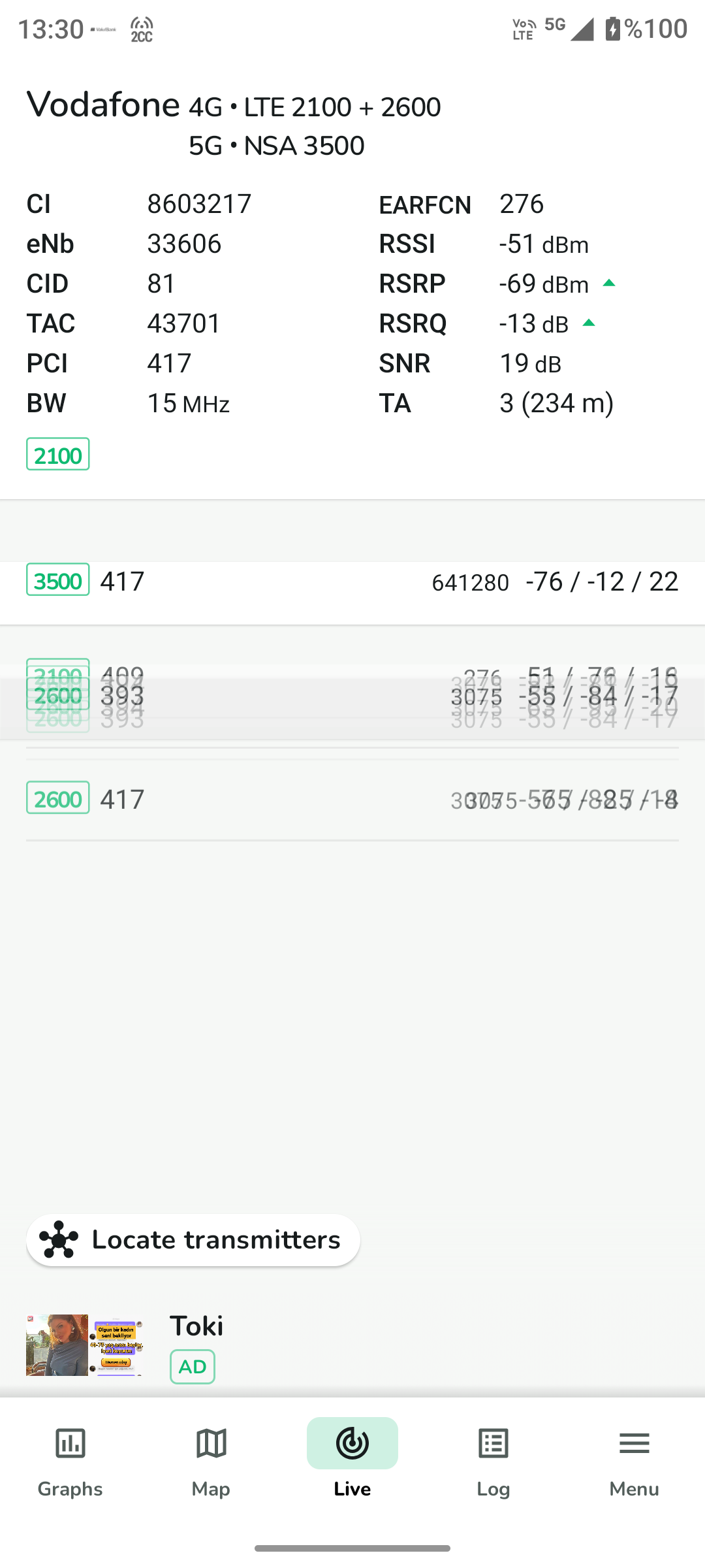 Arkadaşlar yaklaşık 10n yıldır Nperf üzerinden Vodafone yi haritalıyorum Nperf 1 yıl sonunda silse de devam ediyorum. 2024 temmuz sonunda Antalya Gündoğmuş Eğrigöl ve Geyik dağlarını, ibradı,ormana Kars,Ardahan,Erzurum,Şavşat ve daha bir çok il,ilçe ve köyü haritaladım size sunuyorum. Güncel haritalama yapan olursa operatör ve yerini yazarak buraya atsın