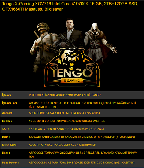 Yanıyor i7 9700k 1660 Ti 5860 TL