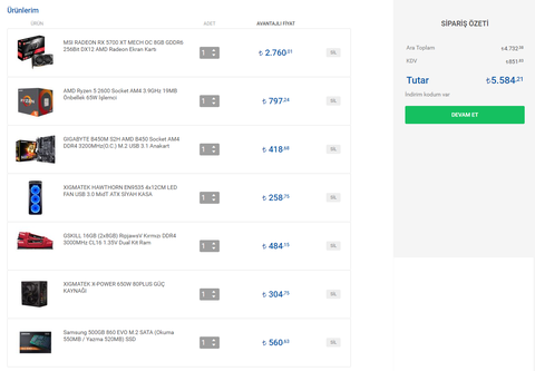 3600 ve 5700 xt olan sisteme Psu Önerisi