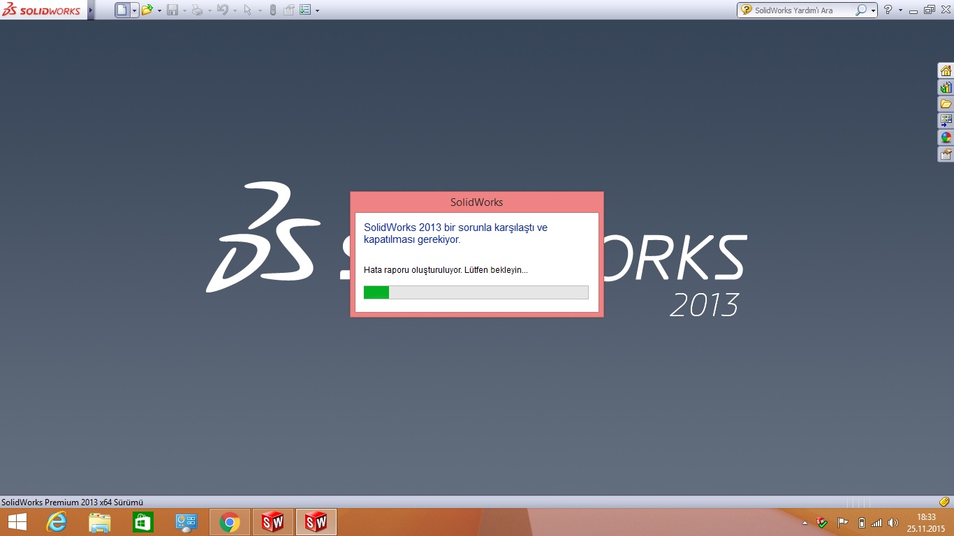 solidworks 2013 bir sorunla karşılaştı hatası yardım lütfen