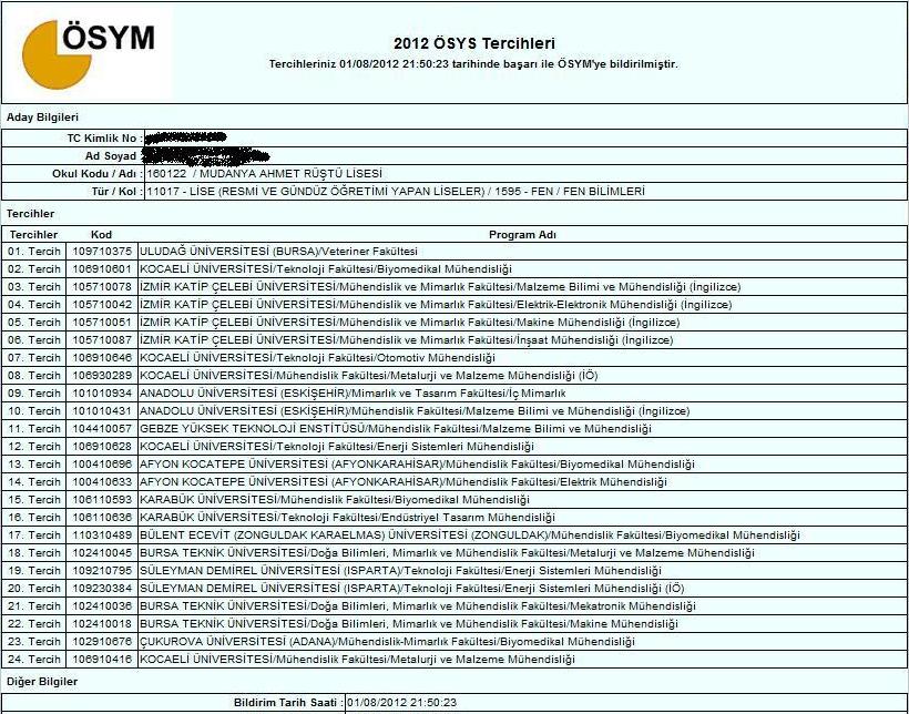 TERCİH LİSTEM