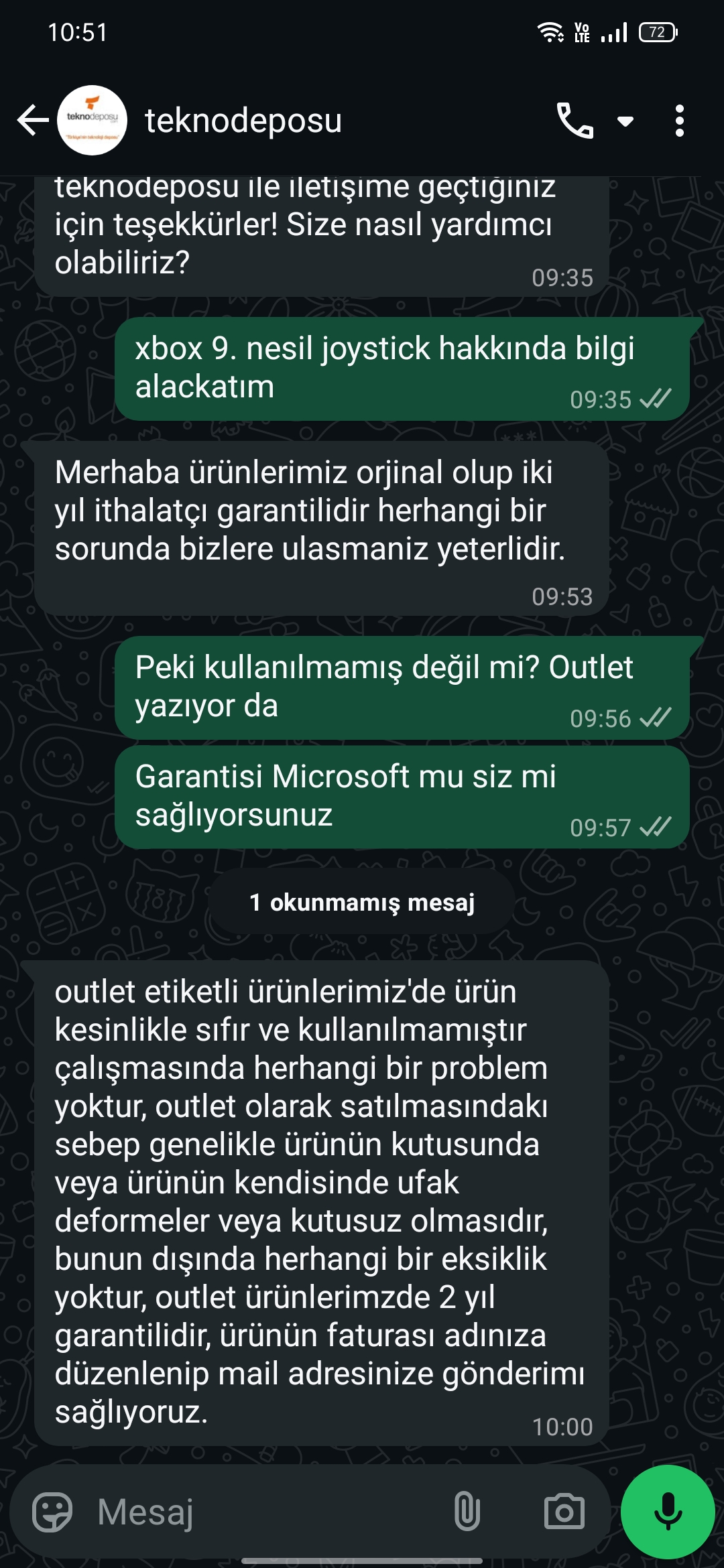 Ürünle ilgili herhangi bir talep veya sorunuz için müşteri temsilcimize WhatsApp üzerinden mesaj atabilirsiniz.