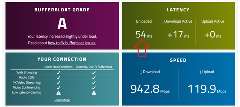 Kablonet 1000 megabit Bufferbloat çok yüksek çıkıyor