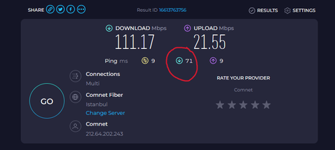 Kablonet 1000 megabit hız testi sorunu