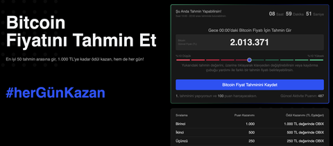 Her gün Bitcoin fiyat tahmin yarışması yapılıyor, ücretsiz yarışmalara katılarak 50. kişiye kadar ödül kazanabilirsiniz.