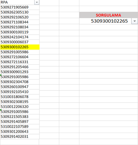 Excele bir liste yapıştırdığımda ctrl+f ile tek tek aratmak istemiyorum.