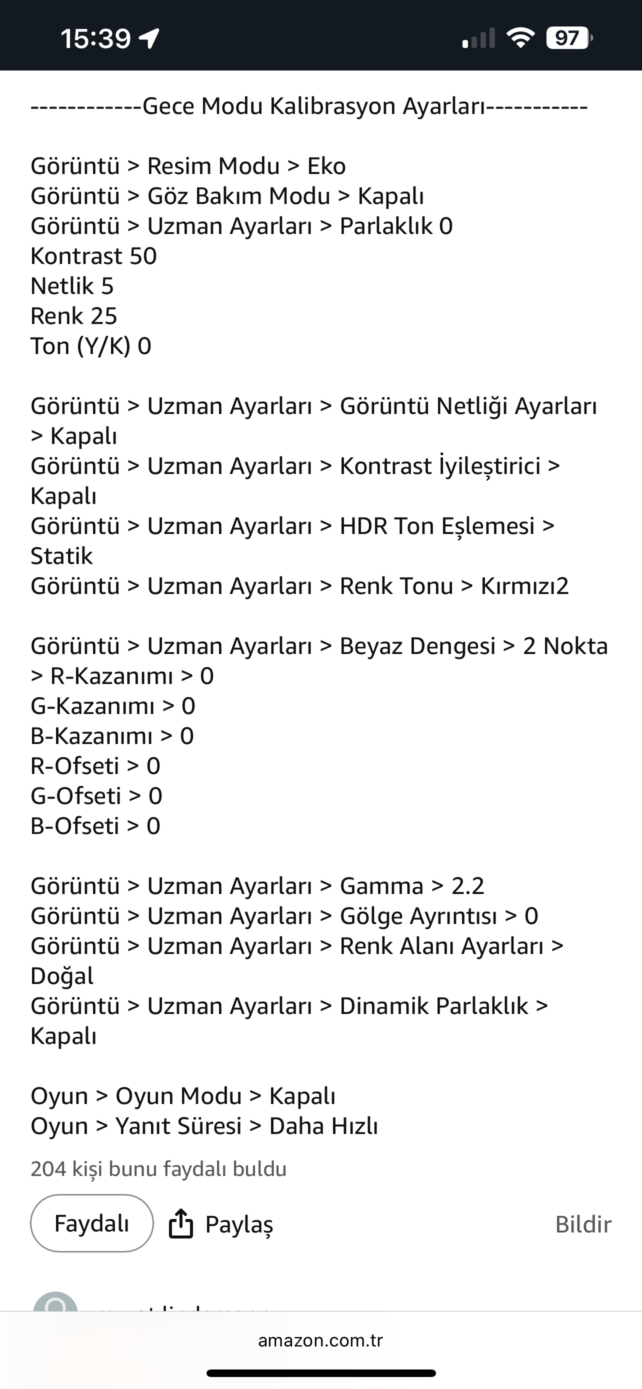 Konun başlarında linkteki paylaşım yapılmış. Başka önerilerde var. ![]() ![]() ![]() Ayrıca nerede bulduğumu hatırlamıyorum, hazırlayan kişi affetsin kullanım şekline göre hazırlanmış ayarları gönderiyorum. Samsung M7 Serisi 43” Uhd Akıllı Monitör https://forum.donanimhaber.com/mesaj/yonlen/154409374 |