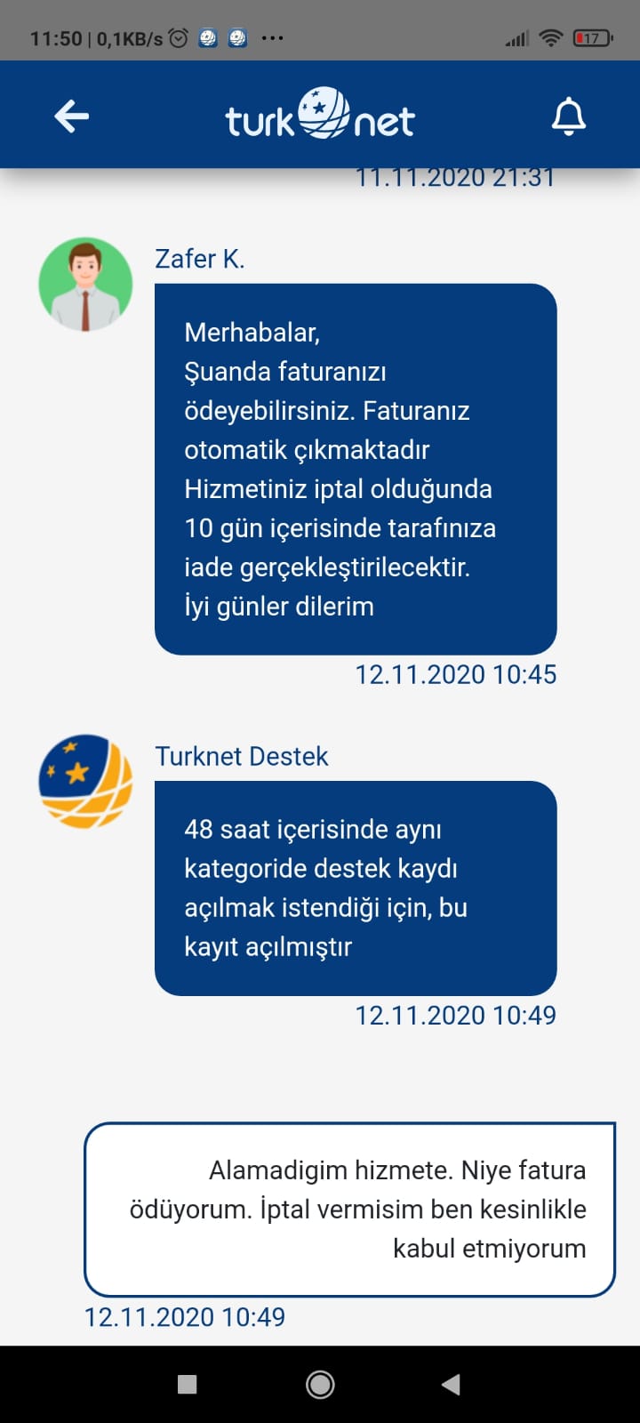 Evet tam tahmin ettiğim gibi cevap verilmedi. Sıkıntı değil ben beklerim bakalım ne zaman ilgileneceksiniz. şikayet sonuçlarımıda buradan acıkca yazıcam. Herkes bilgilensin kimin ne kadar şeffaf oldugunu anlasınlar. |