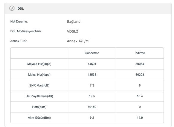 Upload düşük. Dsl link bilgisi kısmının fotosuna bakmak lazım.